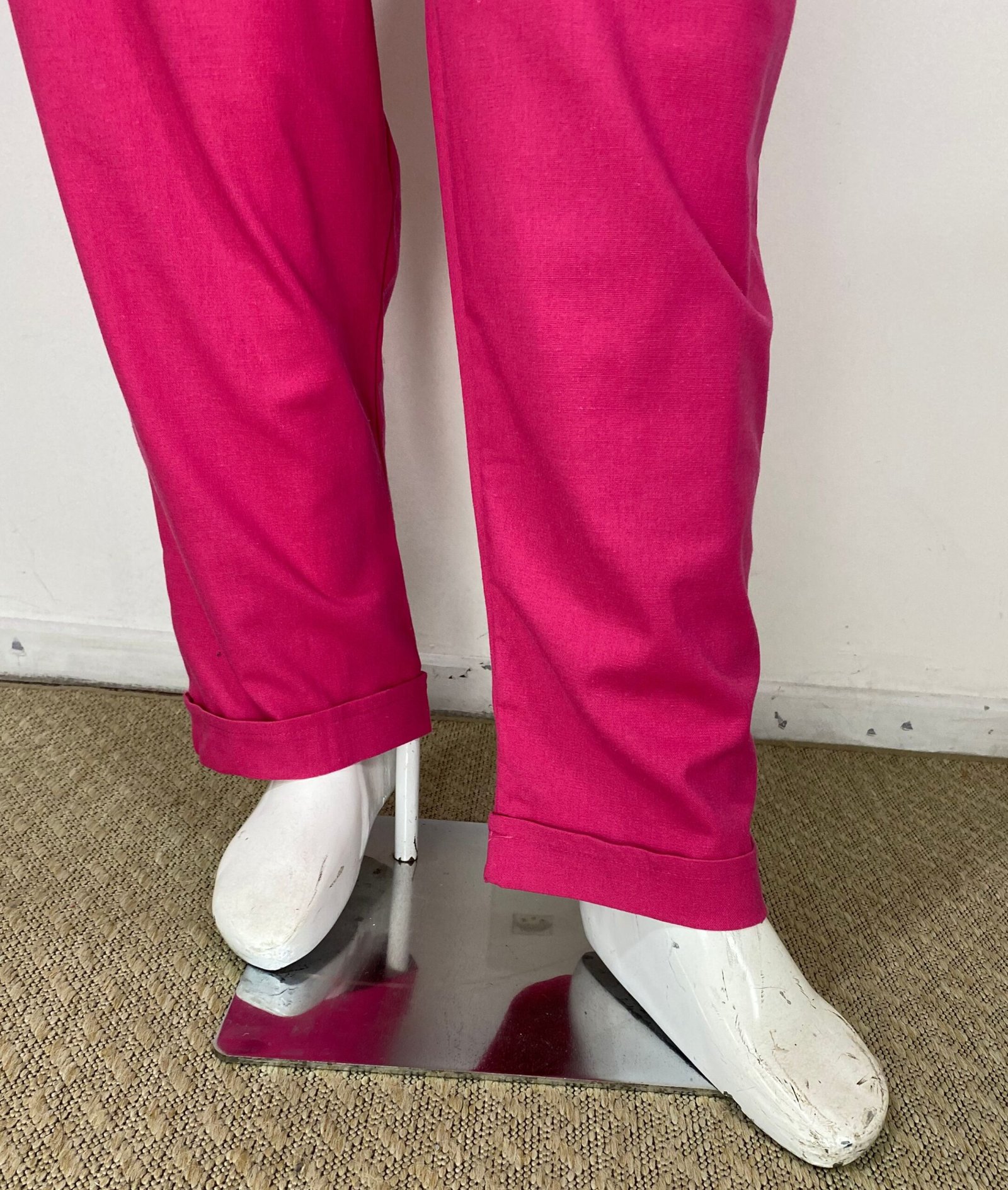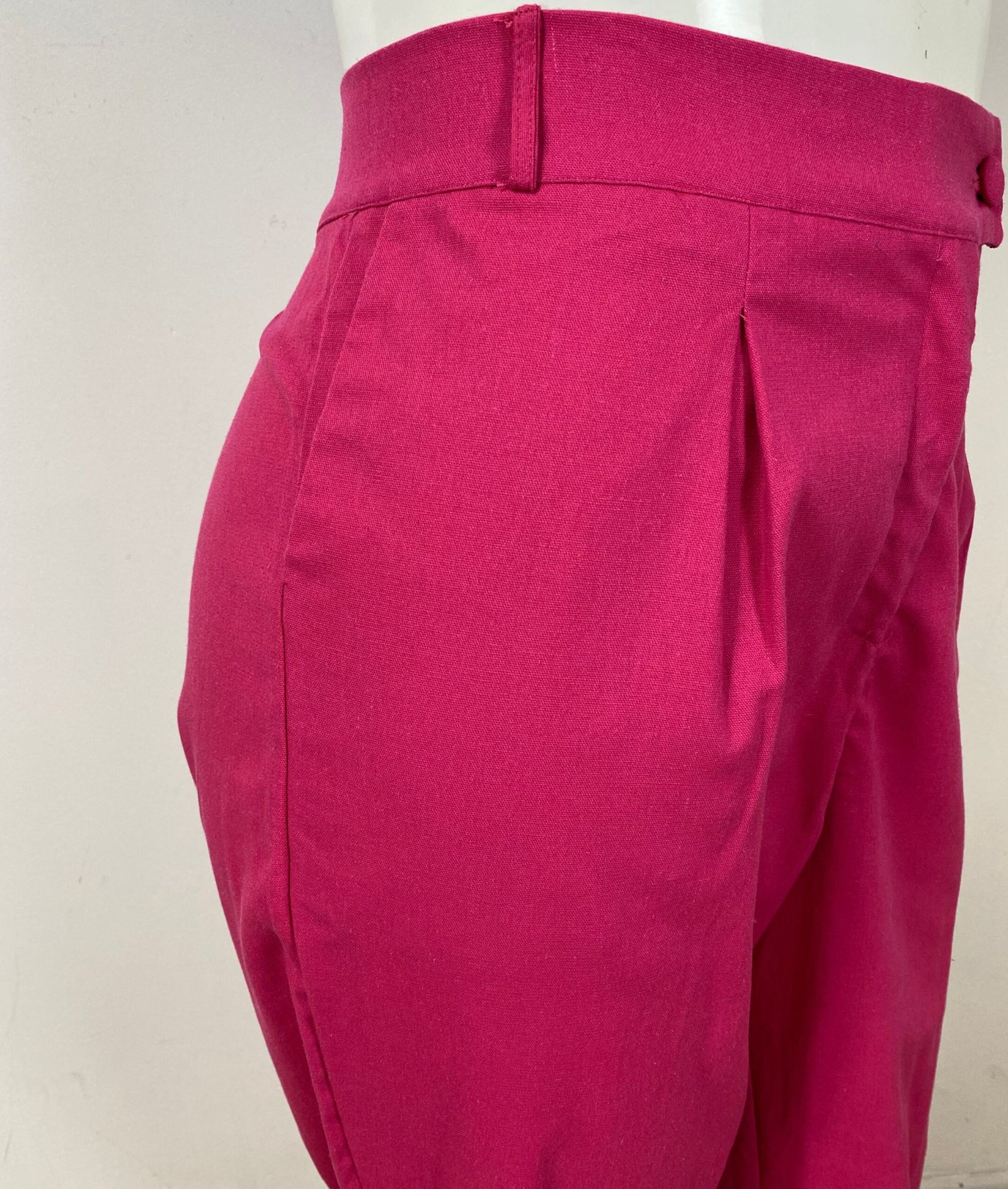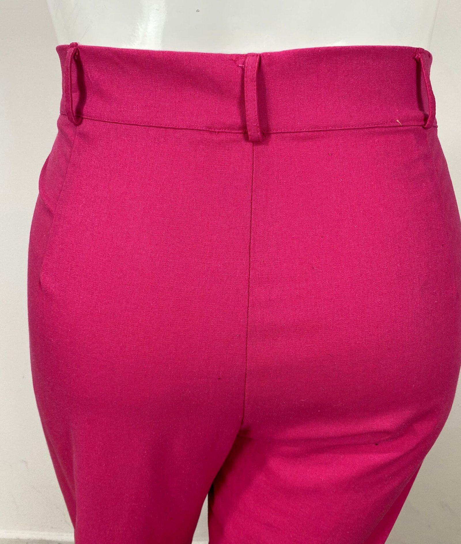 Calça modelo cenoura, com fechamento frontal por zíper e botão. Possui bolsos tipo faca na parte frontal, não tem bolsos traseiros e conta com barra italiana, garantindo um acabamento moderno.