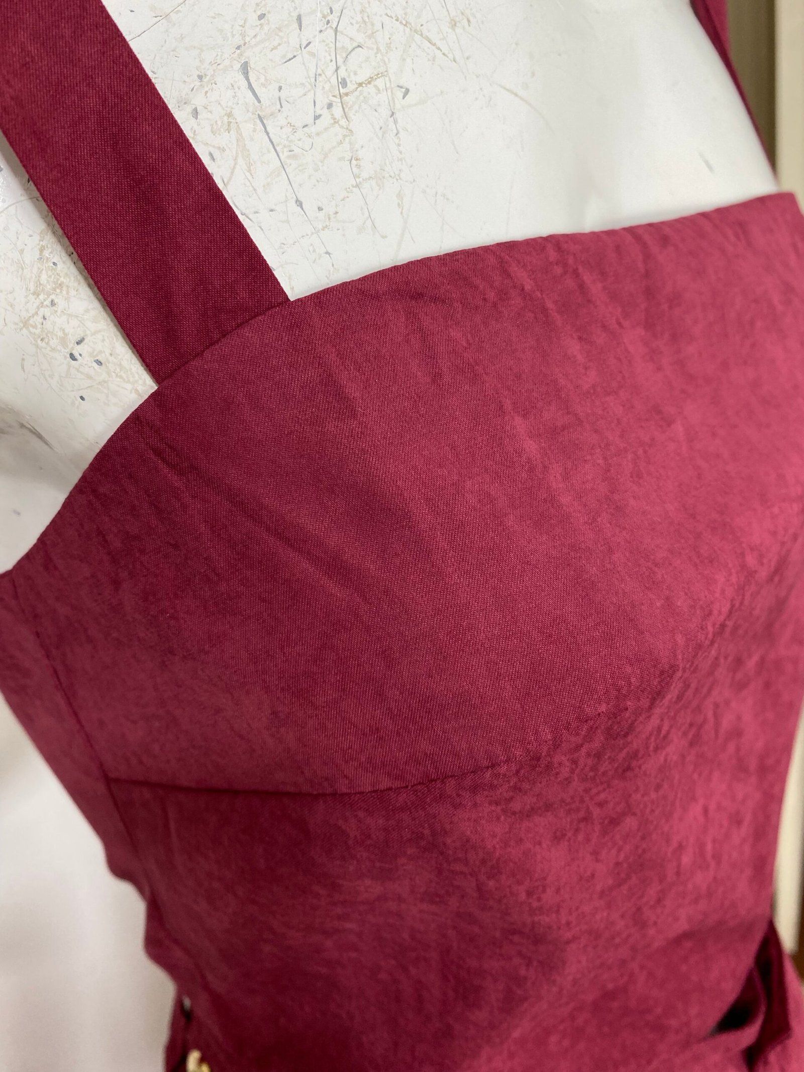Cropped bordô com alças largas, totalmente forrado e com fechamento em zíper nas costas. Possui elástico ao longo do decote, garantindo melhor ajuste e conforto ao vestir.