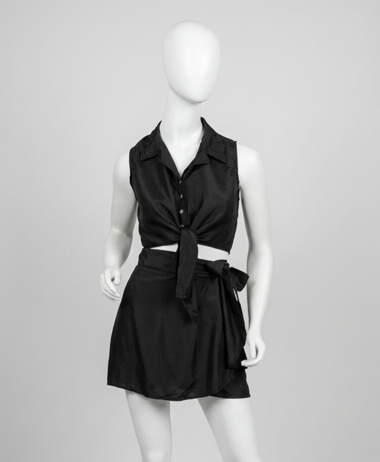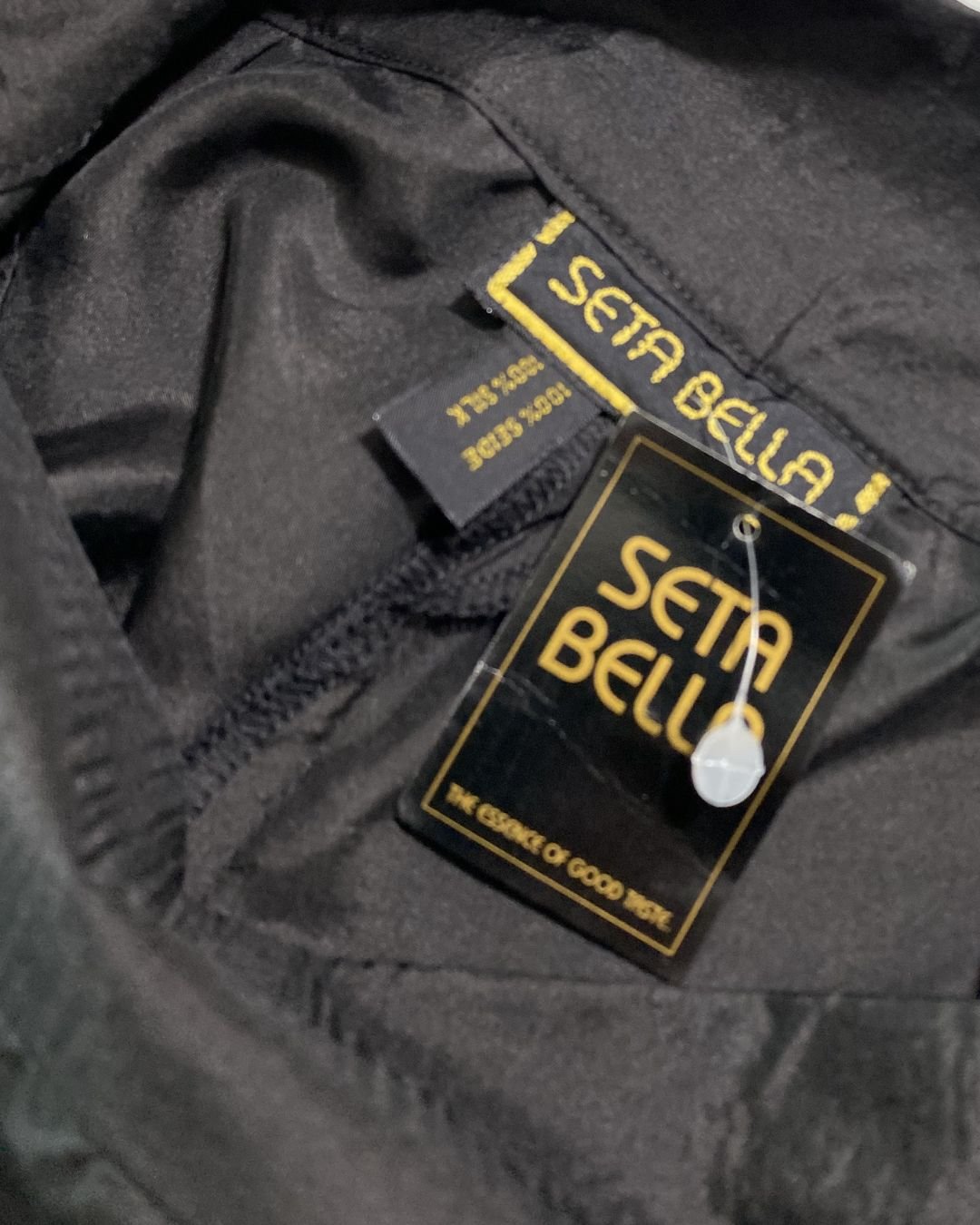Short saia, na cor PRETA, em seda pura. O modelo é envelope e ele amarra lateralmente. A Seta Bella é uma marca Australiana especializa em produzir roupas em seda.
